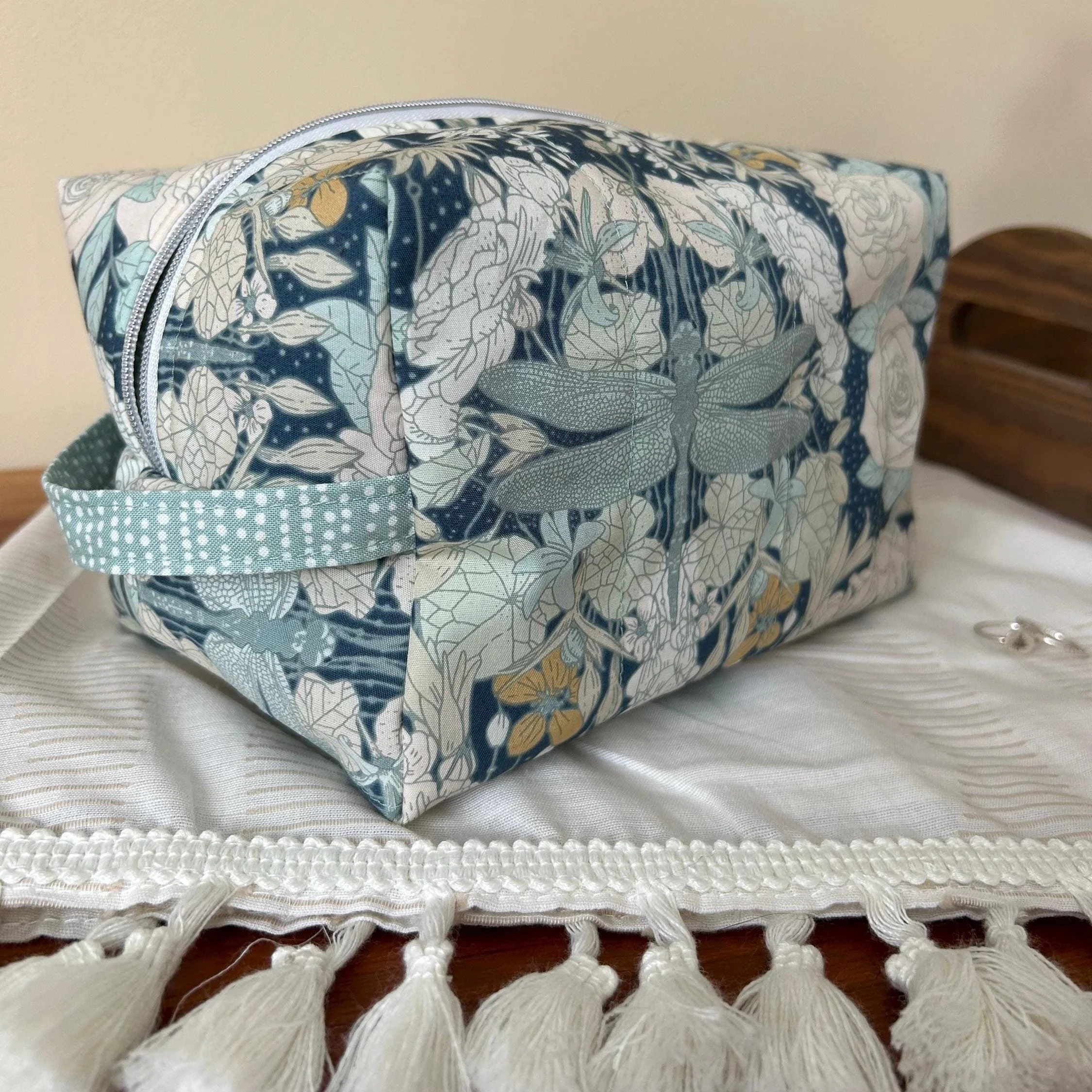 Handmade Quilted Box Pouch - Floral Print Makeup Bag with Zipper - Organizer for Travel and Everyday Use