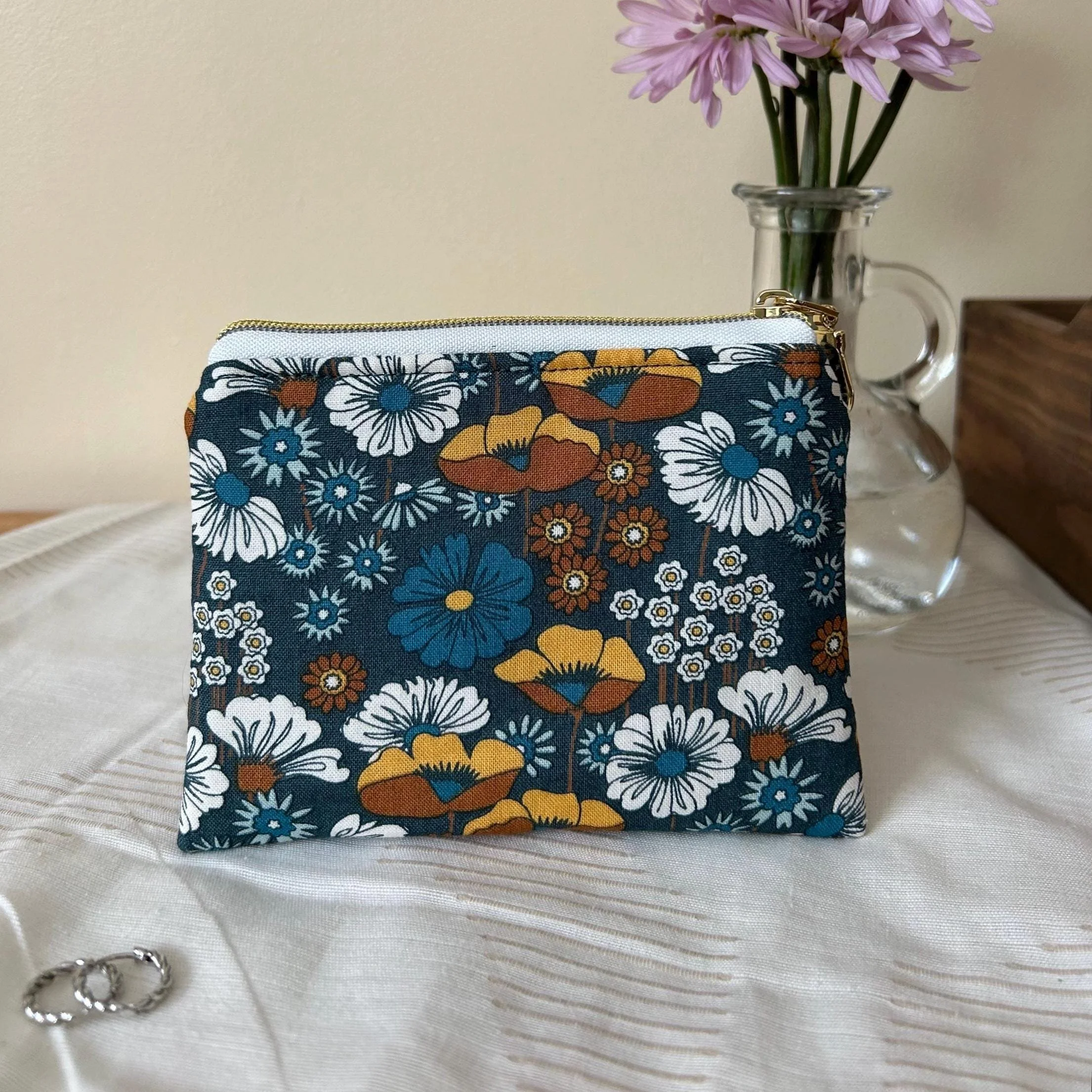 Pattern placement and pouch size may vary slightly, as these are handmade items.